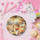 Hanukkah Aquarellbild. Ein wunderschön gestaltetes Set für eine festliche Feier mit einer traditionellen Menorah mit Kerzen. Das weiche, warme Licht, die Dekoration der Ferien verleiht dem Ganzen eine Touch Beifall. Warme Lichter schaffen eine gemütliche und einladende Atmosphäre.