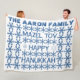 Happy Hanukkah Star von David Menorah Snowflakes Pattern Blau und Weiß elegante Fleece Blanket Einzigartiges Personalisiertes Geschenk jüdische Feier Feier Judenfest Hebräisches Festival, Familienname hinzufügen oder Ihren Text