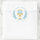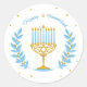 Ein hübsches Hanukkah-Design mit einer hübschen Menorah und Weinreben in Pastellblau und Gold.