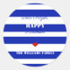 Happy Hanukkah Streifen Muster Blau und Weiß Runder Aufkleber