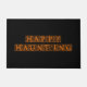 "Happy Haunting"-Ziertext in lebhaften Orangenbriefen, ein humorvolles und raffiniertes Design für ein heimliches Halloween.