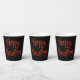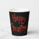 "Happy Haunting" Text in spektralorangen Buchstaben, mit ein paar geistreichen Augen, ein humorvolles Design für ein heimliches Halloween.