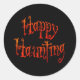 "Happy Haunting"-Text in spektralorangen Buchstaben, mit ein paar geisterhaften Augen, ein humorvolles Design für ein bewegendes Halloween
