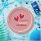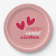 Happy Hearts 16 . Geburtstag Papierteller mit zwei rosa Herzen auf einem diagonal gestreiften rosa Hintergrund. Ideal für jede sechzehnte Geburtstagsparty. © Morning 6