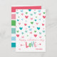 Senden Sie Liebe diesen Valentinstag mit dieser hellen und fröhlichen Fotokarte. Handgezeichnete Herzen umkreisen Ihr Muster und zeigen auf der Vorderseite handgeschriebene "Liebe". Die Rückseite der Karte hat einen hellen, mehrrosa Streifen. Personalisieren Sie mit dem Namen Ihrer Kleinen und viel Platz, um im Namen des Empfängers zu schreiben.
