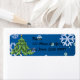 Personalisieren Sie Ihre Daten mit Name und Adresse. Schneeflocken auf blauem Hintergrund mit einem Weihnachtsbaum.