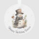 Mit diesem atemberaubenden zweiseitigen runden Ornament fügen Sie Ihrem Urlaubsdekor eine Touch personalisierten Zaubers hinzu. Auf der einen Seite finden Sie eine wunderschön gestaltete Aquarellbild des Weihnachtsmanns, der auf seinem Schlitten durch eine ruhige Winterlandschaft reitet, begleitet von einem Raum, in dem der Text individuell gestaltet werden kann, um ihn wirklich zu einem eigenen zu machen. Fügen Sie Ihren Namen, einen Ort oder ein Datum hinzu. Dreh es um, und du wirst von einem fröhlichen Snowman-Design begrüßt, gepaart mit dem anpassbaren Satz: Happy Holiday Season, dass Sie bearbeiten und personalisieren können, nach deinen Wünschen. Jedes Design zeichnet sich durch sanfte, pastellfarbene Aquarelltöne aus, die Wärme und Freude hervorrufen und dieses Ornament zum perfekten Sake oder ein Weihnachtsgeschenk für ein Familienmitglied oder einen Freund machen.
