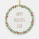 Happy Holidays 20XX Family Name Wreath Berries Keramik Ornament