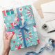 Happy Holidays Aquamarines Blau und Rotes Muster Geschenkpapier