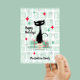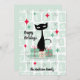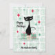 Ein Retro-modernes Weihnachtsdesign mit funky Blockmuster mit klassischer schwarzer Katze Mitte des Jahrhunderts. Die Karte kann auf der Vorderseite mit dem Familiennamen und auf der Rückseite mit Ihrer Nachricht, Familienname und Jahr personalisiert werden. Ideal für Ihren Urlaub Dekoration und Karten!