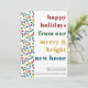 Farbenfrohe Urlaubskarte mit Weihnachten-Streichlampen in Rot, Grün, Blau und Gelb. "Happy Holiday from our fröhlich & hell new Zuhause" wird in großer und kühner moderner Typografie geschrieben und das Design kann für einen Single oder eine Familie editiert werden. Sie können auch Ihre neue Adresse und Ihren Namen hinzufügen. Ein fröhliches und helles Design, um allen lassen, Ihre neue Adresse kennen.