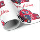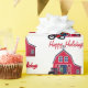 Weihnachts rote Scheune mit rotem Traktor auf weißem Hintergrund mit Happy Holidays Text.