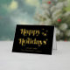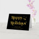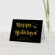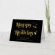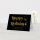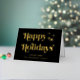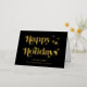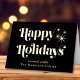 Elegante, schwarz gefaltete Weihnachtskarte mit "Happy Holidays", die in stilvoller Typografie und Ihrem Namen in klassischer Serifentypografie präsentiert wird, alles in Ihrer Wahl von echten Gold oder Silberfolie. Fügen Sie eine personalisierte Nachricht auf der Innenseite hinzu oder verließ leer für einen handschriftlichen Hinweis.