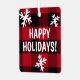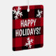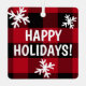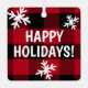 Das fröhliche Schwarz-Rot-Büffel-Karo-Muster zeigt helle, weiße Schneeflocken und die Worte Happy Holidays. Sie können die Wörter sowohl vorne als auch hinten ändern. Dieses trendige Design funktioniert gut bei der Arbeit, bei Türkränzen und Weihnachtsbäumen.