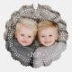 Zierkarte mit dem Foto innerhalb eines Punktes und das Jahr 2023 flankiert von Retrostern auf der Vorderseite. Text auf der Rückseite "Happy Holidays" in einem festlichen Schriftart. Fügen Sie eine benutzerdefinierte Meldung hinzu. Dunkelblauer Hintergrund mit weißem gepunktetem Rand. Alle Farben sind im Designwerkzeug anpassbar.