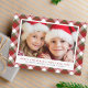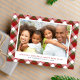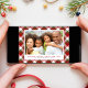 Urlaub mit Ihrem Foto gerahmt vor einem fröhlichen rot, grün und weiß saisonalen karierten Hintergrund. Sie können den "Holiday Cheers & Happy New Year" Gruß, Ihre Namen und das Jahr in einfacher Typografie personalisieren.