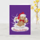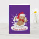 Niedlicher Weihnachtsmann in Weißmilch mit der Kappe des Weihnachtsmannes auf einem lila Hintergrund mit Happy Holidays Text. Alle Texte können bearbeitet werden. Die Hintergrundfarbe kann geändert werden.