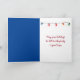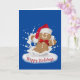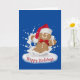 Niedlicher Weihnachtsmann in Weißmilch mit der Kappe des Weihnachtsmannes auf blauem Hintergrund mit Happy Holidays-Text. Alle Texte können bearbeitet werden.