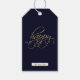 Weihnachtsgeschenk-Tag in unserem marineblauen blau und gold "Happy Ferien" Design. Passen Sie diese Geschenkmarken mit Ihrem Familiennamen an. Tag kehrt zu einem soliden marineblauen Design zurück.