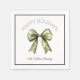 Happy Holidays Green Watercolor Bow Modern Serviette