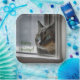 Diese Teller im Winter bieten ein bezauberndes Bild eines Katzenblicks aus einem Winterfenster.