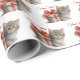 Aquarellbilder eines niedlichen Kätzchens mit einem roten Weihnachtsbogen auf einer Geschenkboxen. Alle Texte können bearbeitet werden.