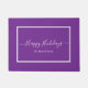 Eleganter Happy Holidays Doormat mit einem weißen Skript auf einem lila Hintergrund, geschmückt durch einen lila Hintergrund. Personalisieren Sie Ihre Daten mit Ihrem Familiennamen oder Text.