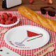 Rotes Martini-Glas mit Zuckerrohr auf weißem Hintergrund. Text kann geändert oder gelöscht werden.