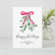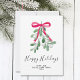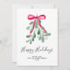 Diese Weihnachtskarte ist mit Aquarellgrün mistletoe, einem roten Band, und stilvolle Schrift Typografie, die sagt "Happy Holidays" leicht anpassbar. Original Wasserfarbe © Michele Davies.
