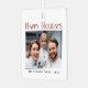 Moderne, minimalistische Urlaubsornamente mit elegantem Stil. Diese brillanten Ornamente bieten eine einfache und dennoch raffinierte Typografie Gruß, die lautet "Happy Holidays (in einer regulären roten Farbe), Your Family Name and the Year". Dieses individuelle Design zeichnet sich durch Ihr beliebtes Foto- oder Familienbild auf der Vorderseite aus, hervorgehoben durch einen einzigartigen, modernen Farbverlauf. Auf der Rückseite des Ornaments befindet sich ein Textbereich für Ihre benutzerdefinierte Nachricht. Macht ein großartiges Beigeschenk.