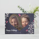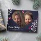 Einfach minimalistisch elegante schicke marinebrosa handgeschriebene Drehbuch Happy Holidays Custom Foto Winter Weihnachtskarte mit zartem Heiligen Beeren Zweige. Einfach mit Foto (Herzform), Text und Unterschrift personalisieren.