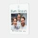 Moderne, minimalistische Urlaubsornamente mit elegantem Stil. Diese brillanten Ornamente bieten eine einfache und dennoch raffinierte Typografie Gruß, die lautet "Happy Holidays (in einer Kieferngrün), Your Family Name and the Year". Dieses individuelle Design zeichnet sich durch Ihr beliebtes Foto- oder Familienbild auf der Vorderseite aus, hervorgehoben durch einen einzigartigen, modernen Farbverlauf. Auf der Rückseite des Ornaments befindet sich ein Textbereich für Ihre benutzerdefinierte Nachricht. Macht ein großartiges Beigeschenk.