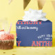 Machen Sie sich mit dem individuelle Name-Packpapier auf Weihnachten vorbereitet! Dieses festliche Design besticht durch Sportjersey-inspirierte Typografie mit einem Retroblock-Schriftart, einer Weihnachtsmannmütze und Sternen. Personalisieren Sie die Vorlage mit dem Namen des Empfängers, das Jahr, plus Sie können die Phrase 'Chill and be merry' mit Ihrer eigenen Urlaubsnachricht anpassen. Dieses einfache, stilvolle Design ist perfekt für Kinder, Jugendliche, Familien und Freunde! Eine nahtlose Musterverpackung, erhältlich in glänzender oder matter Ausführung. Druckfarben: dunkelblau, marinebasiert, rot und weiß.