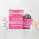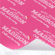 Machen Sie sich mit dem individuelle Name-Packpapier auf Weihnachten vorbereitet! Dieses festliche Design besticht durch Sportjersey-inspirierte Typografie mit einem Retroblock-Schriftart, einer Weihnachtsmannmütze und Sternen. Personalisieren Sie die Vorlage mit dem Namen des Empfängers, das Jahr, plus Sie können die Phrase 'Chill and be merry' mit Ihrer eigenen Urlaubsnachricht anpassen. Dieses einfache, stilvolle Design ist perfekt für Kinder, Jugendliche, Familien und Freunde! Eine nahtlose Musterverpackung, erhältlich in glänzender oder matter Ausführung. Druckfarben: Rosa, Rot und Weiß.