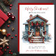Diese rustikale Aquarell Happy Holidays neue Zuhause für die Urlaubsankündigungskarte mit festlich dekorierter Holzfront mit Kiefernbäumen und Bäumen, Kranz und roten Urlaubsbögen wäre ideal, um Ihre Freunde und Familie zu schicken, nachdem Sie auf eine neue Zuhause umgezogen sind. Das Gefühl ist anpassbar. Erhalten Sie genug, damit jeder, den Sie kennen und die Liebe Ihre neue Adresse hat. Sie werden so aufgeregt sein über deinen großen Zug!