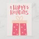 NewParkLane - Weihnachts-Postkarte in einem schlichten / minimalen Retro-Stil, mit einem niedlichen Weihnachtsgeschenk in Orange und Rosa, mit einem Happy Holidays Wunsch in lustiger, Script Typografie. Haben Sie spezielle persönliche Designwünsche? Kontaktieren Sie mich bitte!