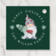 Ein traditionelles Nisse gnome bringt Happy Holiday Wünsche. Er trägt einen grauen Strumpf mit roten Polka-Punkten und roten Fäustern. Sein langer Bart bedeckt die meisten von ihm und man kann kaum seine Zehen sehen. Er trägt einen Kiefernbaum. Happy Holidays ist oben in gebogenem Text geschrieben. Ihr Name oder Ihre saisonale Nachricht befindet sich unten im selben weißen, gekrümmten Text. Wunderbar, als Teil Ihrer Weihnachtsverpackung oder als Umschlag Aufkleber zu verwenden.