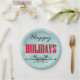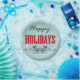 Vintages Happy Holidays Design mit Schneeflocken und Blumendekoration auf blauem Hintergrund