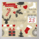 Seamless Happy Holidays Design Weihnachtssymbole - Schneeflocken, Hirsch, Kalender, Weihnachtsbaum, Weihnachtsgeschenk, Skate, Herzen, Weihnachtsschmuck, Weihnachts-Strumpf, Band - Dekoration auf grauem Hintergrund