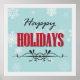 Vintages Happy Holidays Design mit Schneeflocken und Blumendekoration auf blauem Hintergrund