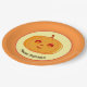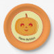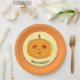 Happy Holidays Kürbis Gesicht Papierteller. Niedliche Kürbisgesicht auf hellgelbem Hintergrund. Text kann für Halloween-Party, für Erntedank oder für jede andere Gelegenheit personalisiert werden. Viel Spaß!