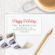 Ein rotes und grünes "Happy Holidays" Label für die saisonale Rücksendeadresse für all Ihre Urlaubssendungen. Passen Sie einfach Ihren Familiennamen und Ihre Adresse an, um die letzten Touchs auf diesen Urlaubskarten zu platzieren.