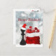 Dieses festliche, schachsichere Weihnachtskartendesign besticht durch eine Winterschneeszene mit einem Schachstück, das eine Weihnachtsmannmütze mit einer schönen Geschenktüte trägt. Enthält den Satz "Happy Holidays!".