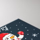 Ein niedliches, modernes Weihnachtsdesign mit einem Schneemann in einem warmen Hut und einem Strumpf. Mit Glocken, Bonbons und Mistelkuchen