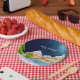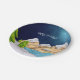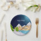 Einfache Holiday Papier Teller mit blauem dunklem Hintergrund Himmel und Berge mit Schnee. Ideal für Ihre Weihnachtszeit. Illustriert von Patricia Alvarez.