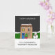 Eine einfache Abbildung eines Hauses in der Nacht, von außen gesehen. Das Haus ist mit einem festlichen Kranz, Baum und Feenleuchten dekoriert. Dann wird das Bild von den Worten "Happy Holidays to a beautiful property manager" begleitet.