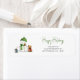 Einfache und niedliche Happy Holidays kehren Adresse-Etikett mit einer Illustration eines niedlichen Schneemanns und einiger Tiere zurück. Perfekte Ergänzung für Ihr Weihnachtsgeschirr. Illustriert und entworfen von Patricia Alvarez.