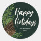 Happy Holidays Watercolor Pine Winter Grüne Runder Aufkleber