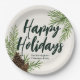 Happy Holidays Winter Pine Greenery Elfenbeinküste Pappteller