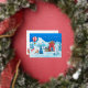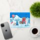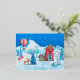 Feiern Sie die Weihnachtszeit mit unserer skurrilen Happy Holidays Winter Wonderland Foil Holiday Postcard mit Aquarellbildern eines weißen Winterwunderlandes mit einer roten Kabine und schneebedeckten Bäumen und Rentieren, die die Weihnachtsbaumlichter überprüfen! Alle sind in lebhaften Rot-, Blau-, Azurblau- und Bräunungstönen gestrichen. Der Text Staaten "Happy Holidays" und kann mit Ihrem eigenen Gruß aktualisiert werden, um eine individuelle Grußkarte zu machen.